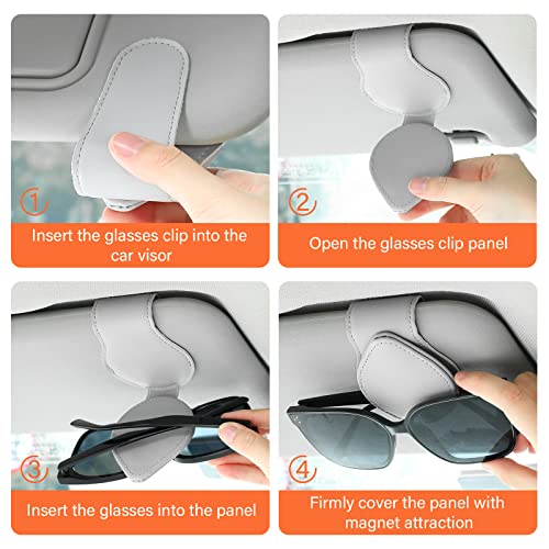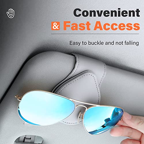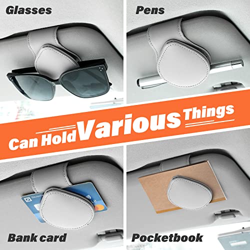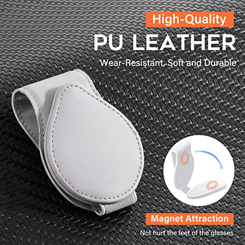 Rhino Valley Glasses Clip for Car Visor, 2-Pack Universal Car Eyeglasses Holder Clip Organizer Magnetic Adsorption Leather Sunglasses Hanger Holder Auto Visor Accessories Clip, Gray