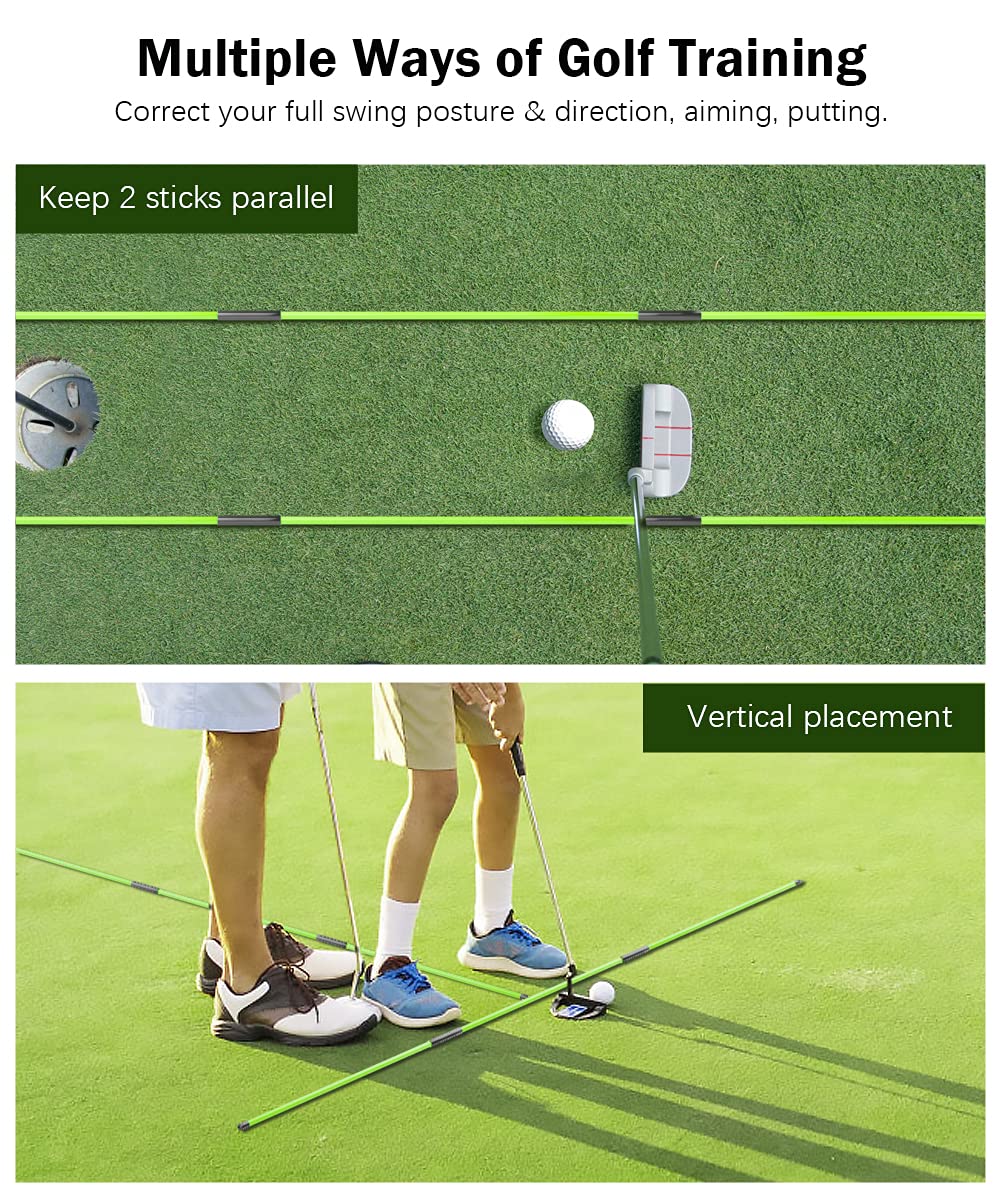 MULTI-PURPOSE – The training rods can be used for full swing, short game, putting and set-up, aiming, putting, full swing trainer, posture corrector, etc. Perfect for Indoor and Outdoor Use.
