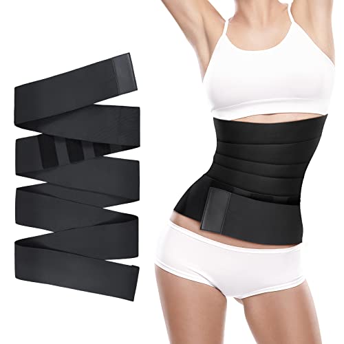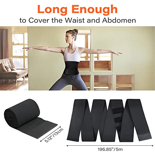 Rhino Valley Waist Wrap Trainer Waist Trimmer Belt, Adjustable Waist Bandage Wrap Tummy Sweat Wrap Stomach Belly Body Shaper Waist Support Back Braces Postpartum Recovery for Women, 4m, Black